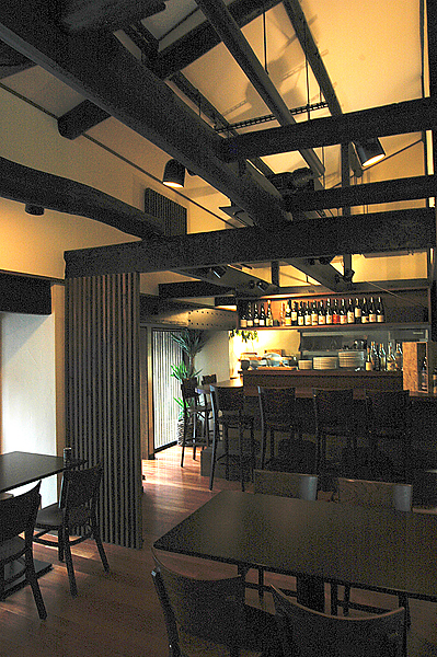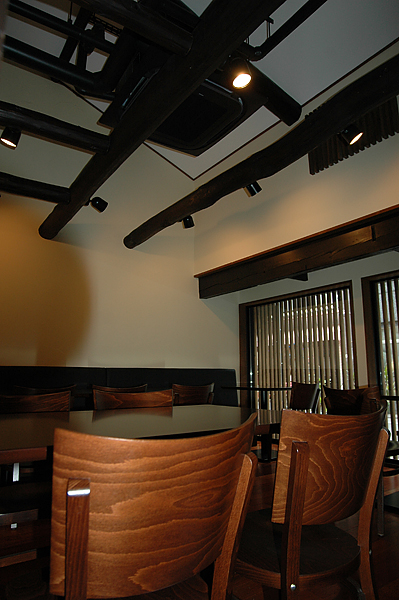旧家ならではの重厚な梁を生かし、照明の光と影、木の持つ温もり感、また開放感のある高い天井が、とても居心地の良い空間となっております。