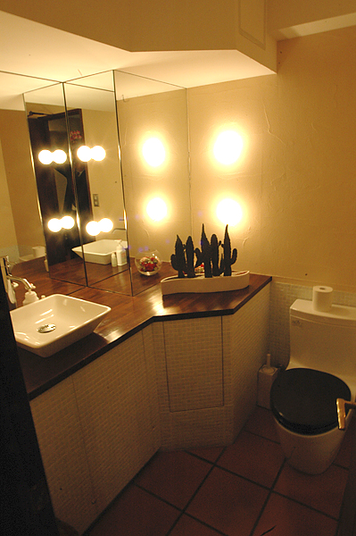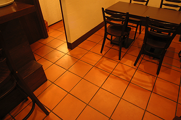 床はテラコッタ(イタリア製素焼きタイル)を使用しています。なんとも言えない温かみがあり、お客さまの足の裏に伝わる「居心地の良さ」が、オーナーの見えない心配りと、心底敬服です。